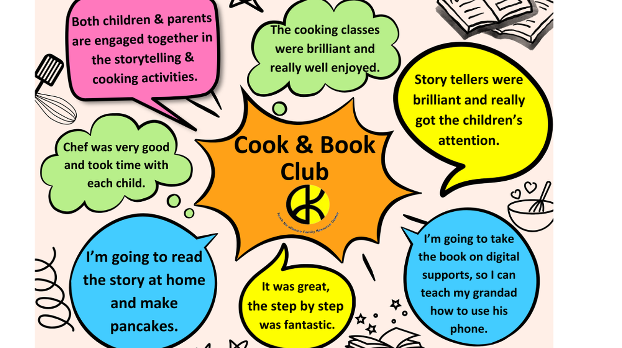 Intergenerational literacy activities focusing on history and traditional recipes.